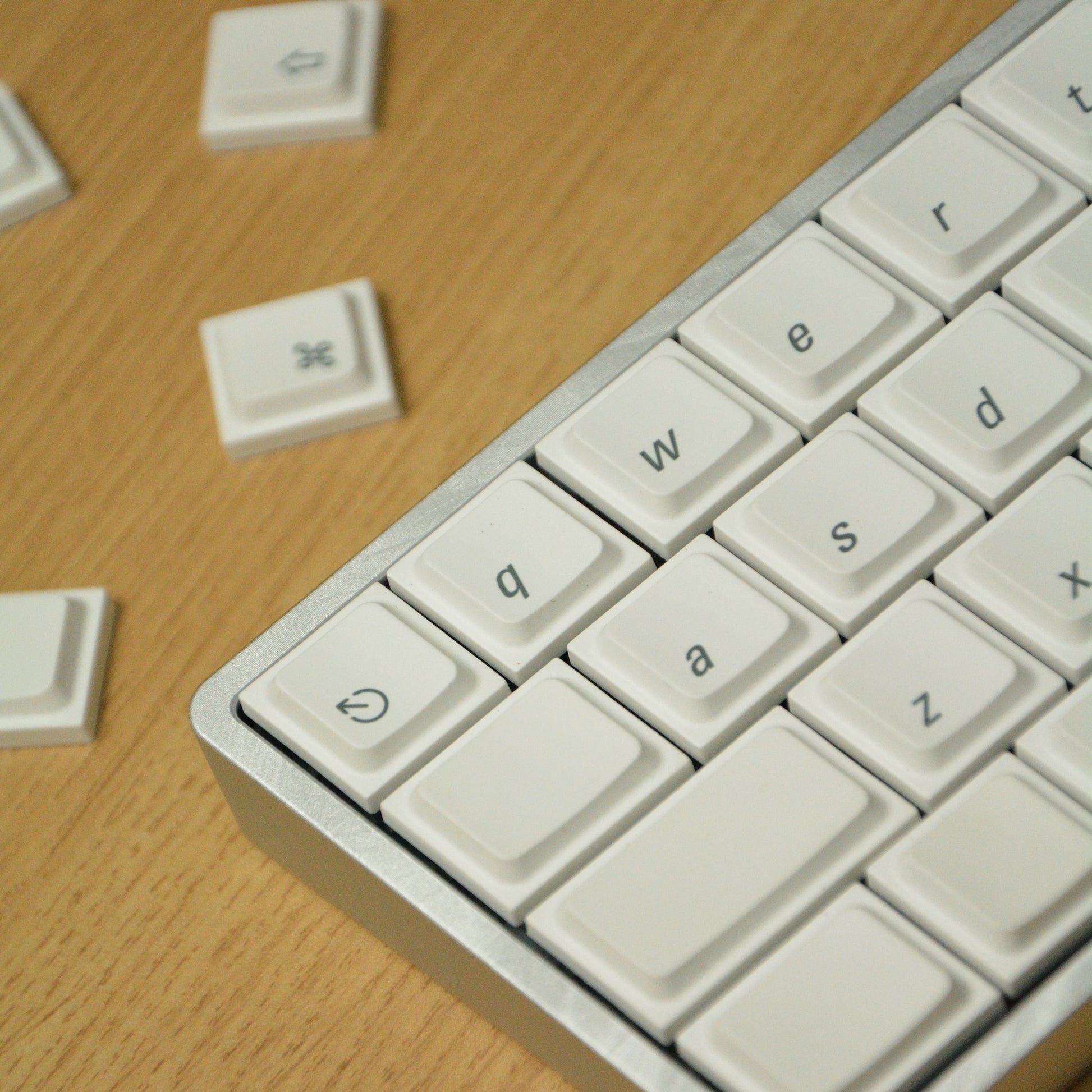 一般的なロープロファイルキーキャップと比べて、このキーキャップは中央部分がやや盛り上がっており、表面は下向きにカーブしているため、指によりフィットし、優れた触感と誤入力の軽減を実現します。 素材はPBTで、Cherry MXの十字軸に対応しています。