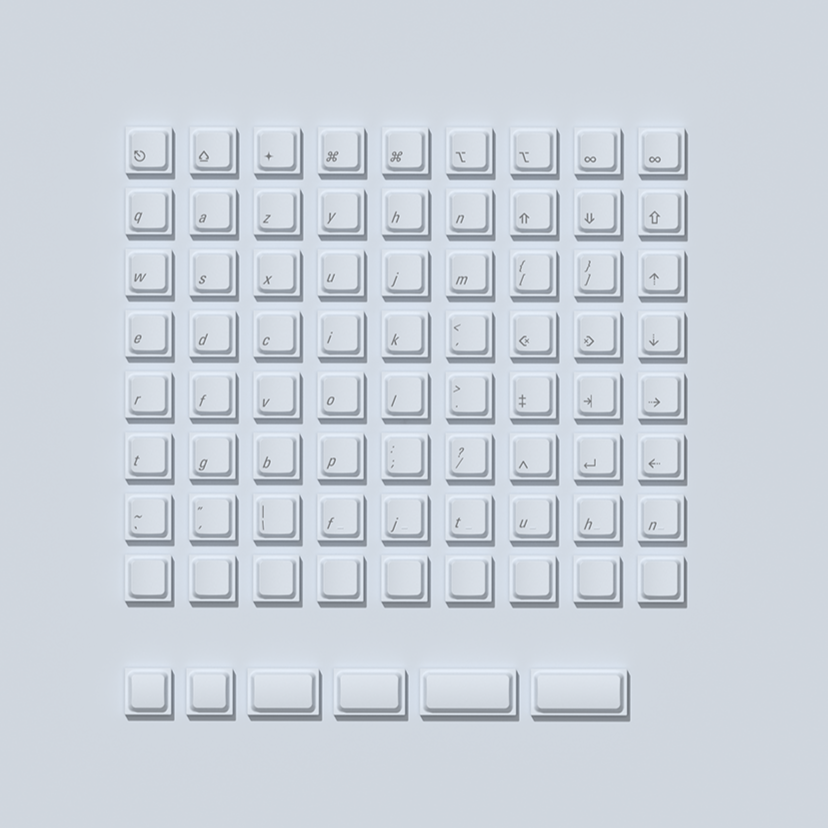 一般的なロープロファイルキーキャップと比べて、このキーキャップは中央部分がやや盛り上がっており、表面は下向きにカーブしているため、指によりフィットし、優れた触感と誤入力の軽減を実現します。 素材はPBTで、Cherry MXの十字軸に対応しています。