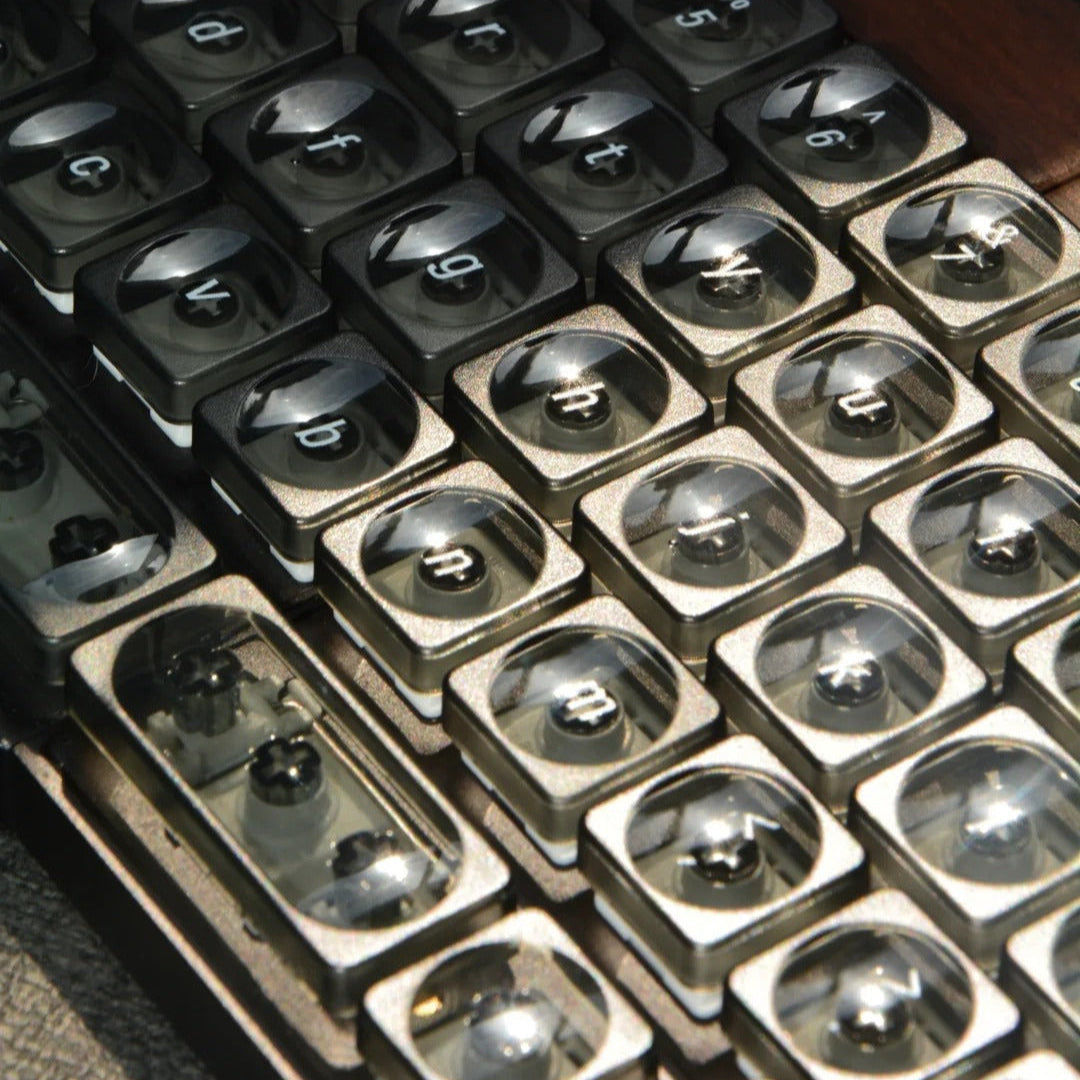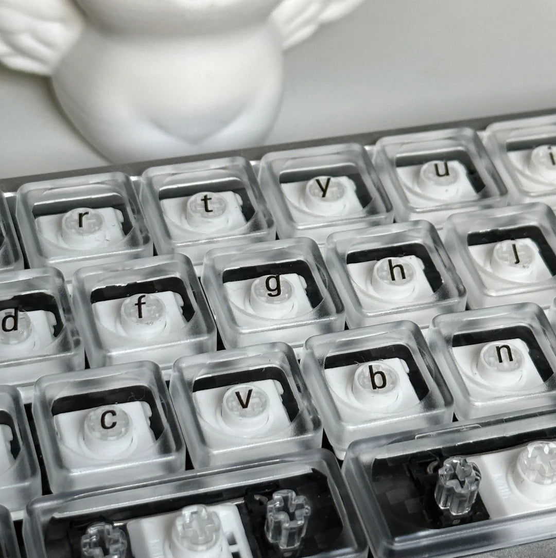 LCKの透明キーキャップは、PC素材を使用し、高い透明度と光沢感を兼ね備えたデザインです。